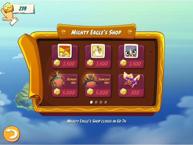 Where the mighty eagle button should be, there is a sales and offers button with things like special packs and stuff. Here is an image below. Fling green bird into top concrete square. Failing the same level three times in a row will unlock the mighty eagle. How many slingshots are there in angry birds 2?